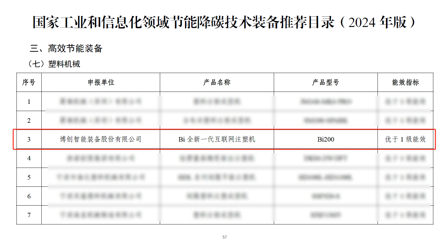 近日,博創(chuàng)自主研發(fā)的全新一代互聯(lián)網(wǎng)注塑機Bi200,憑借卓越能效和創(chuàng)新綠色技術(shù),領(lǐng)先入選國家工信部發(fā)布的《國家工業(yè)和信息化領(lǐng)域節(jié)能降碳技術(shù)裝備推薦目錄(2024年版)》。這標(biāo)志著博創(chuàng)在綠色制造領(lǐng)域的突出貢獻(xiàn)與行業(yè)領(lǐng)先地位。
