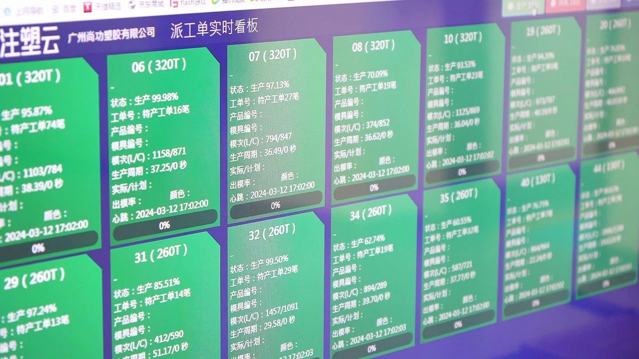 博創還為尚功提供軟件系統服務,通過中和注塑云物聯、生產管理系統MES和標識解析等產品創新應用,為尚功構建全面的數字化車間。該系統實現一物一碼管理,能夠實時監控設備狀態和生產進度,使尚功的生產管理變得更加靈活高效。工廠管理者能夠隨時隨地查看生產情況,異常信息和警告信息的主動推送將“人找事”轉變為“事找人”,大幅減少異常等待和非計劃停機時間。