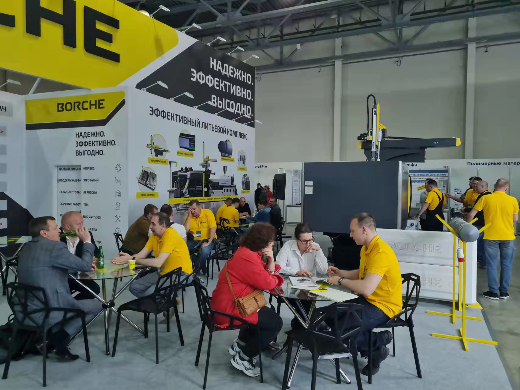 博創作為俄羅斯最主要的注塑機進口品牌之一,本次展出以高端全電機BE160為主的一整套注塑方案。該方案從原料的干燥,輸送,到注塑成型,最后由博創機械手取出和修剪水口,全程自動化,更配以博創注塑云智能互聯系統支持生產過程監控、工單派發、在線檢測機器等功能。全電機BE160更是具有精密穩定、快速高效、智能互聯等優勢。展會期間,博創展位2С07客流絡繹不絕,反響熱烈。開展第一天,便有兩臺注塑機售出。