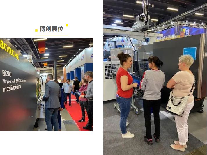 博創展位面積達400平米,是博創在波蘭市場有史以來最大的展位面積。博創攜五臺智能注塑機BE160、BU500-V、Bi200、BS120-II、BH260-V霸氣亮相展會,為客戶帶來博創的最新技術,誠意滿滿。其中,全電機BE160現場生產擠果汁器,二板智能注塑機BU500-V現場生產收納盒,創新技術的展機以及具有新穎造型的產品,吸引了眾多客戶駐足圍觀。
